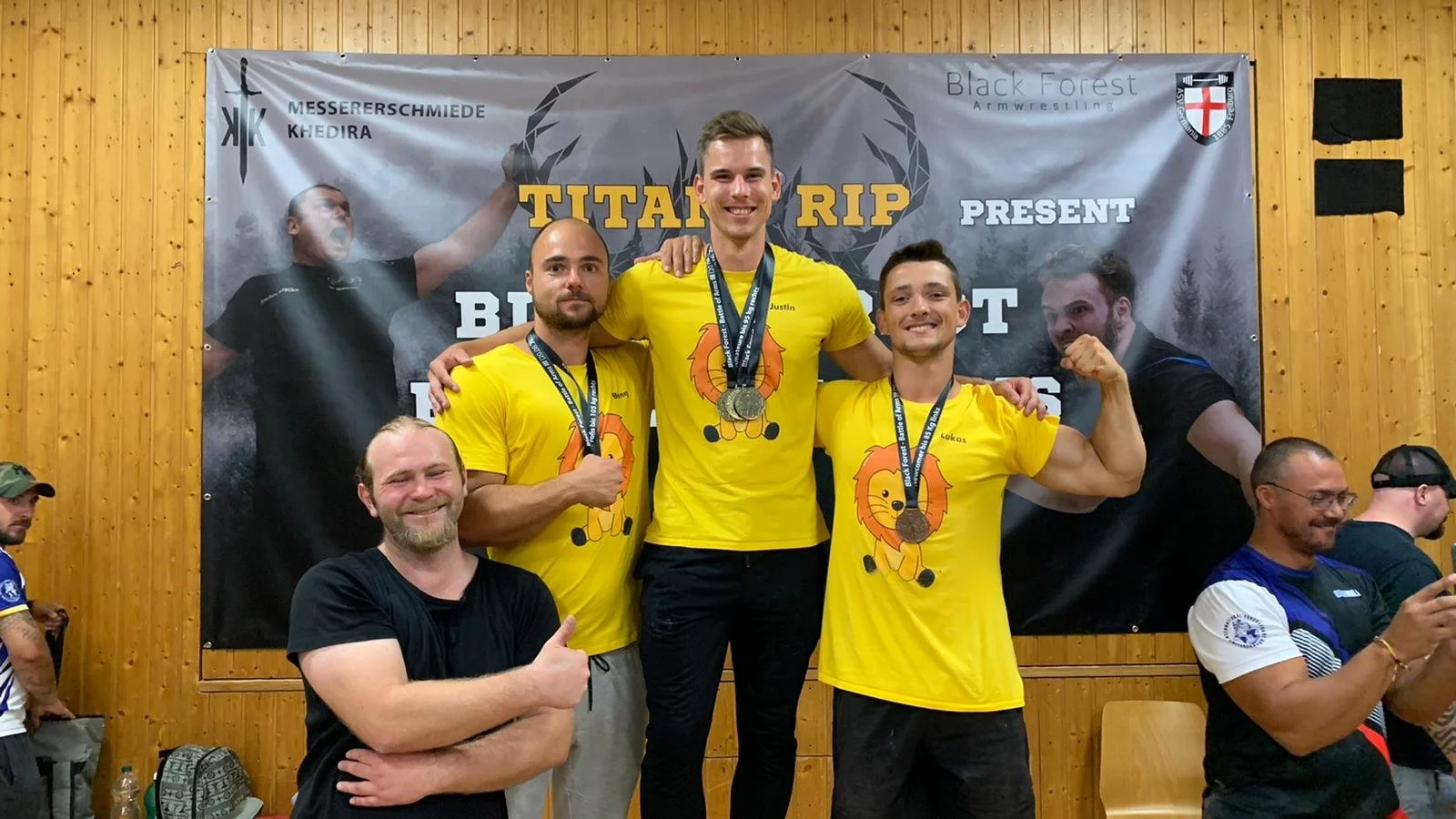 Viele Medaillen für unseren Armwrestling Club. Justin (3.v.l.) holte 4 mal Gold! Levan, nimm dich in Acht ;)